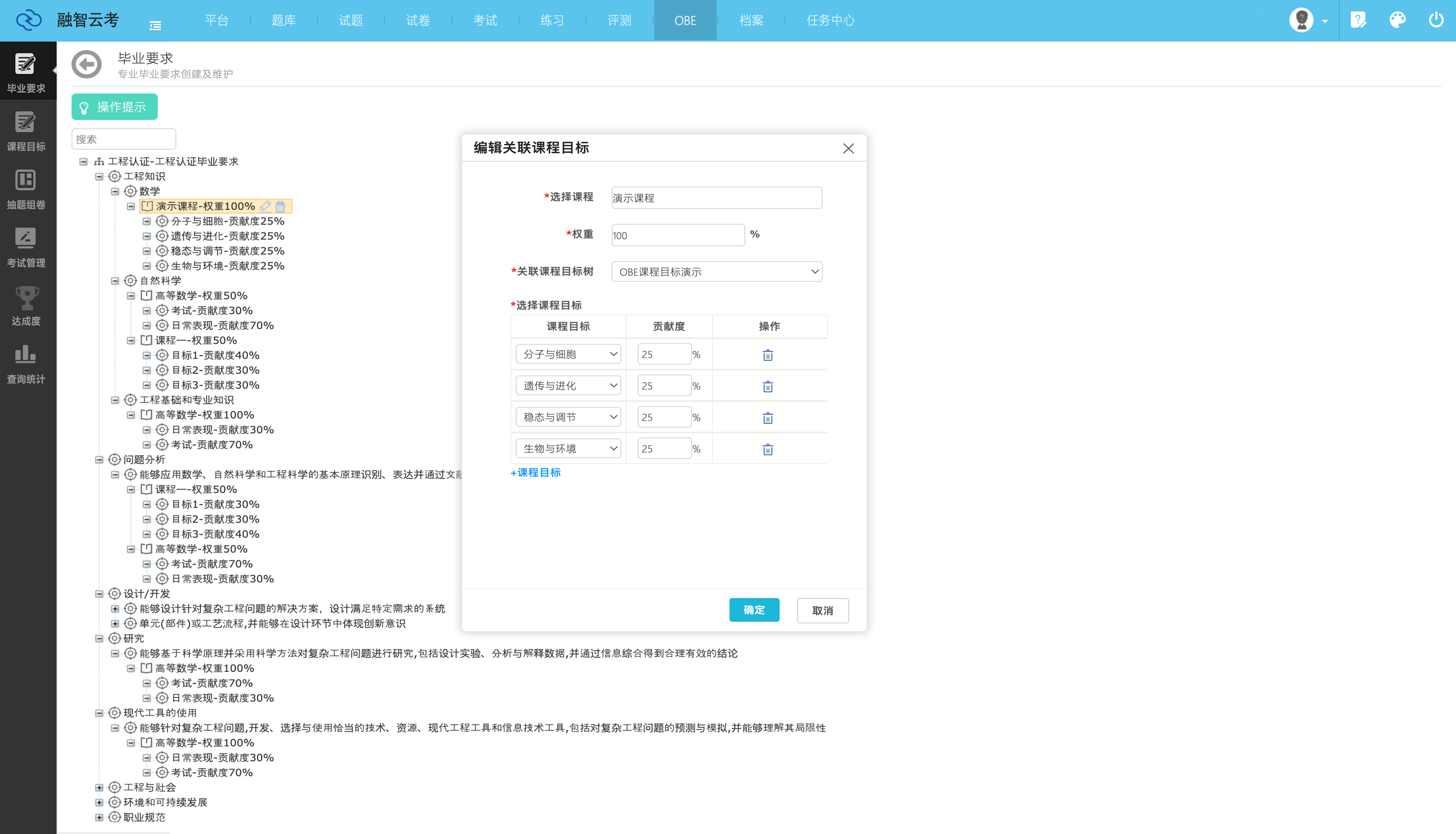 OBE讲授以“学生核心、导向、持续改良”为焦点,强调通过明白预期进修,反向设想课程系统取讲授方式。这一取我国工程教育认证尺度高度契合,已成为高校专业扶植的主要指南。融智云创软件无限公司的OBE处理方案笼盖了从专业扶植规划到课程方针告竣度阐发的全链条,通过数据驱动的体例帮帮高校实现讲授质量的可视化办理取动态优化。以某“双**”高校机械工程专业为例,引入OBE讲授后,该专业通过度解结业要求目标点,沉构了32门焦点课程的讲授纲领,并操纵课程方针告竣度系统对每门课程的查核体例取内容进行了精准设想。实施一年后,学生工程实践能力评分提拔23%,用人单元对劲度达到95%,专业成功通过工程教育认证。融智云创软件无限公司的焦点产物——课程方针告竣度系统,通过三大手艺模块实现讲授评估的智能化升级:据统计,利用该系统的高校平均缩短评估周期60%,数据精确率提拔至98%以上。某使用型本科院校使用后,其电子消息工程专业正在工程教育认证中因“评估系统完美、数据支持无力”获得专家高度评价。
