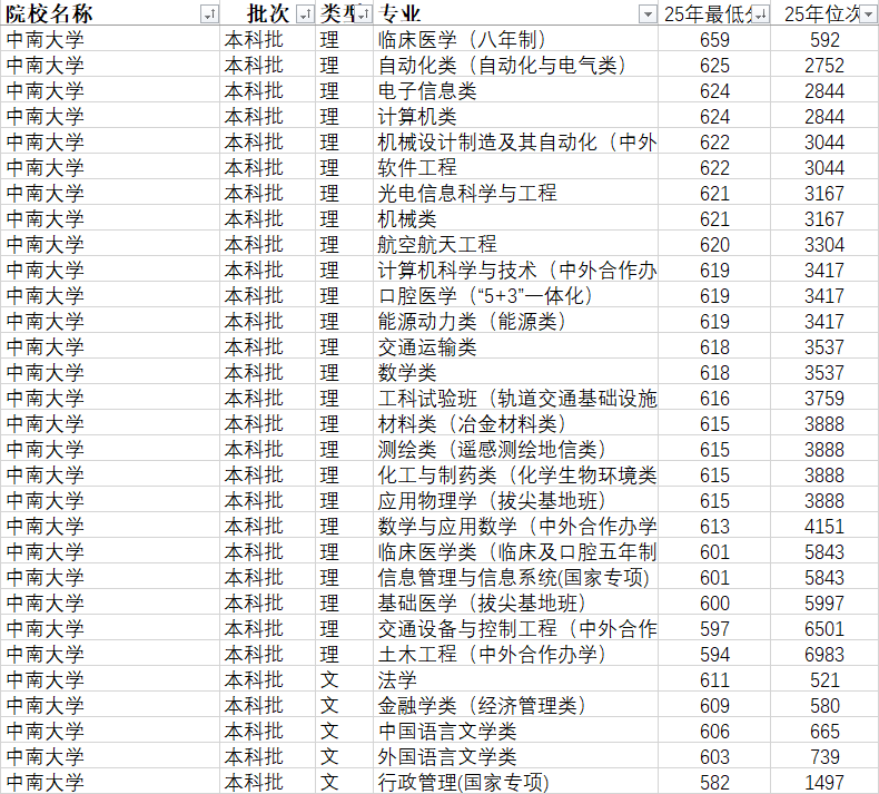:适合分数正在高分、中高分段,逃求985/双一流平台,对医学、工科、文管类专业有乐趣,目力、身体前提合适相关专业要求,打算深制(保研/考研)或进入央企、三甲病院、部分等不变单元就业的考生;特别适合想兼顾“院校实力+宜居”的考生,长沙做为新一线城市,天气暖和,糊口成本适中,比冬季更宜居,就业取糊口性价比双高。:分数脚够的物理类考生,优先选择湘雅医学院的临床医学、口腔医学等专业,依托“南湘雅”的顶尖实力,就业、深制都有保障;其次选择冶金工程、矿业工程、轨道交通信号取节制等工学王牌专业,对接央企,不变高薪;汗青类考生优先选择会计学、金融学、等抢手文管专业,就业面广、承认度高;:① 想进入三甲病院、处置医疗行业的考生,选择临床医学(5+3一体化)、口腔医学、护理学,优先考虑本博连读或保研标的目的;② 想进入央企、处置工程手艺工做的考生,选择冶金工程、矿业工程、机械设想制制及其从动化、轨道交通信号取节制;③ 想处置科研、深制读博的考生,选择冶金工程、矿业工程、临床医学、计较机科学取手艺,适配科研机构岗亭;④ 想兼顾就业面取不变性的考生,选择会计学、金融学、,适配国企、金融机构、部分;⑤ 想拥抱新兴财产的考生,选择人工智能、新能源材料取器件等专业,薪资前景广漠;:① 合适国度专项打算前提的汗青类考生,可借帮政策盈利降低登科门槛,2025年专项最低分比通俗类低21分,劣势显著;② 分数中等、想冲击985高校的物理类考生,可优先考虑中外合做办学专业(需承担高膏火),分数比通俗类低6分摆布,可享受双学位资本;③ 避坑提示:医学类专业进修周期长、课业压力大,需连系本身乐趣取毅力选择;部门专业有严酷体检要求(详见下文),色盲色弱、目力欠安考生需隆重;护理学专业只招收有该专业意愿的考生,入校后不得转入其他专业;2025年招生模式改为按专业招生,无需担忧大类分流风险,但需精准婚配专业分数;④ 转专业利好:2025年转专业打消转出门槛,分数不抱负的考生可通过入学后勤奋转入心仪专业,竞赛获考生有优先转专业资历;:① 轻度色觉非常(色弱)不予登科专业:艺术取科技、使用化学、医学类(含临床、口腔等)、生物工程、药学等;② 色觉非常II度(色盲)不予登科专业:上述专业及冶金工程、新能源材料取器件等;③ 不克不及精确识别颜色者:不予登科上述专业及金融学、会计学、计较机科学取手艺等;④ 医学类专业对目力有要求,裸眼目力低于4。8者需隆重报考。学校招生代码以2025年省教育发布为准,通俗类、国度专项打算、中外合做办学零丁招生,代码分歧,报考时需留意区分,避免报错;2025年班初次高考间接填报,计较机、物理等班可间接填报意愿,无需额外选拔;长沙校区坐落于岳麓山脚下,邻接湖南大学、湖南师范大学,学术空气稠密,校园漂亮,天气潮湿暖和,冬季比温暖,夏日风凉,宜居性强;同时长沙做为新一线城市,就业机遇充脚,练习资本丰硕,特别适配想远离严寒、逃求舒服糊口的考生;赞帮系统完美,设有国度学金、校级学金及行业专项励,家庭经济坚苦学生可申请帮学金取勤工帮学岗亭,缓解经济压力;中外合做办学专业也有专项赞帮政策;校友资本遍及全国,从央企高管、三甲病院院长到科研范畴领甲士物,均有大量中南大学校友,为结业生就业、职业成长供给强大支持,地区较小,籍结业生回省就业(如油田、省人平易近病院)承认度极高,校友帮扶劣势较着。中南大学做为全国顶尖的985/双一流A类分析高校,凭仗3个A+学科的硬核实力、50余个博士点的深制支持、25。71%的高保研率、98%的就业率,以及湘雅医学、王牌工学的奇特劣势,再加上长沙新一线城市的宜居盈利,成为高分、中高分段考生冲击顶尖高校、兼顾“深制+不变+成长”的黄金选择。2025年学校招生新政利好浩繁,扩招、按专业招生、转专业放宽,为考生供给了更多机遇。考生可连系本身分数位次、身体前提取职业规划,精准定位焦点专业,把握国度专项打算、中外合做办学等报考径,抓住这所“985万能王者”的报考机遇,借帮学校的平台劣势取资本,人生的全新征程!前往搜狐,查看更多。